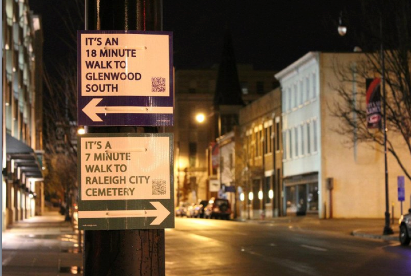 11. The tactical urbanist who put up these signs in Raleigh, South Carolina, named his project Guerilla Wayfinding. Some may call this vandalism, but he really just wanted to promote walking in Raleigh.